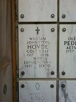5. ^ a b c d Marshall, Bill (October 2006). "William Johnston Hovde". P-47 Thunderbolt Pilots Association. Retrieved November 20, 2016.