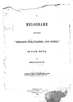 Adams was born in Oberlin, Ohio on February 5, 1821.[2] He came to Yamhill County, Oregon in 1848.[1] He worked as a teacher and made two trips to the California gold fields before publishing the play Treason, Strategems, and Spoils, A Melodrame in Five Acts under the pen name Breakspear in 1852.[1] The play, a political satire that skewered the Democratic party, including Asahel Bush and his Salem Statesman, was first printed in The Oregonian, and is often cited along with Margaret Jewett Bailey's The Grains as one of the earliest works of literature written in Oregon.[1][3][4]