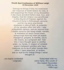 William Leigh (1550โ1639) was an English priest, well-known as a preacher and author. An Oxford graduate, he was the rector of St Wilfrid's Church, Standish, Lancashire, from 1586 until his death.