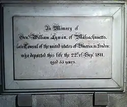 In 1804 Lyman was appointed U.S. consul in London. He died while on duty in 1811 at Cheltenham, Gloucestershire, England, and is interred in the Cathedral at Gloucester, England.