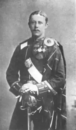 Edwards was promoted to captain on 23 March 1887.[7] He served as adjutant of the 3rd Battalion, HLI, from 1 January 1892,[8] until 1 November 1893,[9] and was promoted to major on 4 September 1895.[10] Edwards retired from the army on 11 November 1896.[11]
