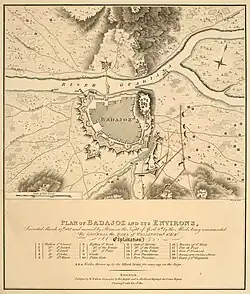 Of the officers of the Royal Engineers who led the storming columns at Badajos three were killed and three wounded; the former being Captain Nicholas and Lieutenants Edward de Salaberry and Thomas Lascelles; those wounded were Captain John Williams, Lieutenants Anthony Emmett and Melhuish.[32][33]
