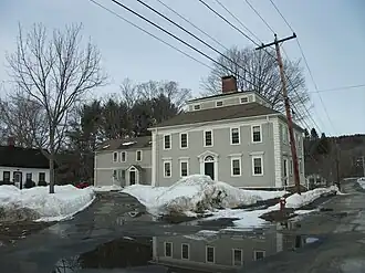 The William Norcross House is located in the village center of Monson, on the north side of Cushman Street a short way east of Main Street. It is a 2+12-story wood-frame structure, with a central chimney, a hip roof that has a central monitor section, and a clapboarded exterior. The building corners have wooden quoin blocks, and windows on the ground floor are topped by projecting peaked lintels. The main entrance is on the western facade, and is flanked by pilasters and topped by a half-round transom and gabled pediment. Secondary entrances added later are located on the street-facing eastern facade.[2]