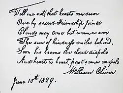 Signed poem by Oliver, 1829