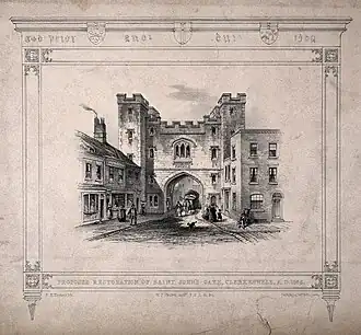 Other works include: The restoration of St. John's Church, Clerkenwell, 1845; the restoration of St John's Gate, 1845–6; the rebuilding of the spire (1849) and the erection of a font (1851) for St James's Church, Clerkenwell. The drawing of the font was engraved.[1]