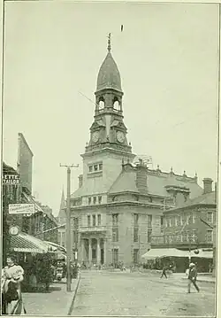 For forty years, the offices of the firm were in the Vaughan Building on Custom House Street, completed by Walker & Gould in 1879. They remained in the building even after it was gutted by fire in 1884, destroying their property.[5] During the year-long reconstruction of the building they were located in the Daniels Building across the street.[6] In 1921 they relocated to Hall's Building on Weybosset Street, where they remained until Arnold dissolved the firm.[7] Throughout the firm's history, it was known for the design of public buildings including state armories, town and city halls and public schools. All of the Walkers had important political connections which enabled them to obtain these commissions. Though never the most important part of their practice, the Walkers also designed churches, private homes, commercial buildings and movie theatres, the latter of which may have grown from their experience with wide-span structures in armories.[2]