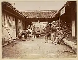 Saunders' success was built upon the production of photographic albums of Chinese landscapes and genre studies.[11] A selection of William Saunders' photographs was published in an early series of 50 prints published before 1871 as a Portfolio of Sketches of Chinese Life and Character.[12] While all other extant copies of this portfolio contain 50 images, a unique copy of the portfolio containing more than 70 photographs was acquired in Sweden by collector Stephan Loewentheil.[13] Saunders contributed regularly to publications such as the Far East and the Illustrated London News.[14] He also photographed local ports in China and Japan, including Yokohama where he settled for three months in August 1862 and assembled a portfolio of approximately 90 images during his time there.[15]