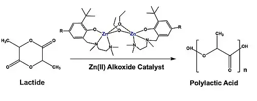- ^ a b c Williams, Charlotte K.; Breyfogle, Laurie E.; Choi, Sun Kyung; Nam, Wonwoo; Young, Victor G.; Hillmyer, Marc A.; Tolman, William B. (2003). "A Highly Active Zinc Catalyst for the Controlled Polymerization of Lactide". Journal of the American Chemical Society. 125 (37): 11350–11359. Bibcode:2003JAChS.12511350W. doi:10.1021/ja0359512. PMID 16220958. S2CID 8507612.