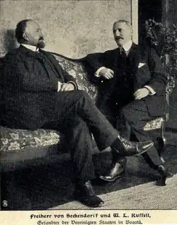 In 1895, he was appointed secretary of the American legation at Caracas in Venezuela,[7] serving until 1904 when he was appointed secretary of the legation and chargé d'affaires ad interim at Panama City (following its separation from Colombia in 1903).[1] On March 17, 1904, Russell was appointed by President Theodore Roosevelt as the U.S. Envoy Extraordinary and Minister Plenipotentiary to Colombia. He presented his credentials on December 9, 1904, and served until he left his post on May 24, 1905,[8] when "he was summoned to Washington as a witness in the investigation of the charges preferred by Herbert W. Bowen, Minister to Venezuela, against Assistant Secretary of State Loomis."[9]
