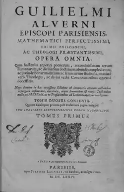 - ^ William of Auvergne by Roland Teske, on Bartholomew's World, William of Auvergne accessed on 23 August 2010