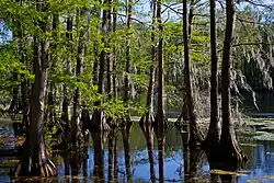 By mid-century, the churchyard of St. James Episcopal Church and other town cemeteries had become filled with graves. On November 16, 1853, a group of citizens, organized as "the Proprietors of the Wilmington Cemetery", was formed to develop a new cemetery. Sixty-five acres of land around Burnt Mill Creek were chosen as the site for what would be called Oakdale Cemetery. It was the first rural cemetery in North Carolina. The cemetery's first interment, on February 6, 1855, was six-year-old Annie deRosset.[44] Many remains from St. James churchyard were relocated to the new cemetery.