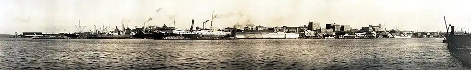 Wilmington's residential area lies between the Cape Fear River and the Atlantic Ocean, and the city developed as a commercial port in the colonial era. Toward the end of the 19th century, Wilmington was a majority-black, racially integrated, prosperous city – and the largest in North Carolina. It suffered what became known as the Wilmington massacre in 1898 when white supremacists launched a coup that overthrew the legitimately elected local Fusionist government.[9] It resulted in the expulsion of opposition black and white political leaders from the city, destruction of the property and businesses of black citizens, including the city's only black newspaper, and deaths ranging from an estimated 60 to more than 300 people.[9][10][11] By 1910, Charlotte overtook Wilmington as North Carolina's largest city.