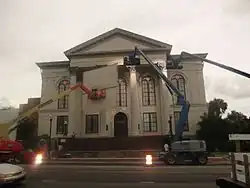 Wilmington is home to the Bijou Theater, which began as a tent in 1904 and progressed to a permanent structure in 1906. It operated until 1956, making it the oldest movie theater in the state and one of the oldest, continuously running theaters in the country.[57] In 1910, Charlotte passed Wilmington to become North Carolina's largest city.[58] In the mid-20th century, efforts to preserve many historic building began. Due to this, many historic buildings were listed as National Register of Historic Places.[59] Since the 1980s, Wilmington has remained the largest film and television production area in the state;[60] many locations in and outside the city have been used for filming.[26][27] In 1990, the extension of Interstate 40 to New Hanover County was opened and officially connected the region to the Interstate Highway System.[61]