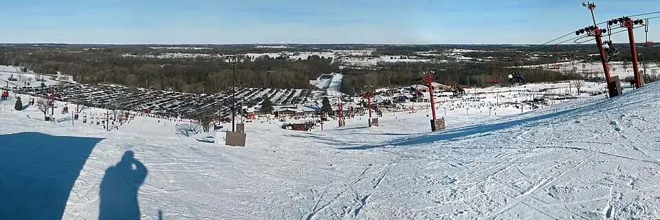 Wilmot Mountain is a ski area in Kenosha County, Wisconsin. It is located in the community of Wilmot and lies in both the Town of Randall and the village of Salem Lakes, just north of the Illinois border. Located in the southern region of Wisconsin's Kettle Moraine, Wilmot Mountain is the result of glaciation. The self-proclaimed "Matterhorn of the Midwest" was founded by Walter Stopa in 1938 after a thorough research of the area's topography. It has a vertical drop of about 200 feet (60 m).[1] It is also one of the few hills where the mountain is wide open, with few trees or barriers to crossing the hill. A skier can transverse several runs while skiing downhill. Night skiing is available on the entire hill.