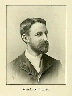 Stearns was born in Cambridge, Massachusetts, to Rev. William Augustus Stearns (1805-1876) and his first wife Rebecca Alden Frazer (1803-1855). He studied at Amherst College where his father was president from 1854 to 1876. He graduated in 1876, taking part in university activities as the manager of the Salem Press and working with the Massachusetts State Agricultural College and serving as curator of its agricultural museum. He also worked for F. W. Putnam and Co publishers in 1879. Stearns took an interest in natural history from an early age, collecting birds eggs as a boy. He obtained some income from selling specimens to natural history museums, corresponded with Spencer Fullerton Baird, and later became a member of the Nuttall Ornithological Club. He joined a trip of the Amherst College to Labrador in the summer of 1875, visiting again in 1880, and 1882. From 1883 to 1886 he served as a lecturer in entomology at Amherst College.[1] Stearns married Anna Augusta Ballam in 1885.[2][3]
