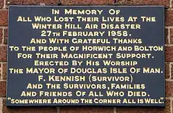 3. ^ "Winter Hill disaster: Air crash victims remembered". BBC News. 27 February 2017. Retrieved 13 January 2021.
