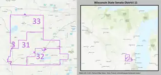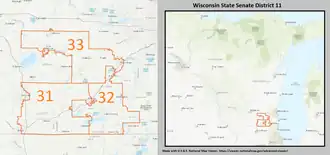 1. ^ "Senate District 11". Wisconsin Legislature. Retrieved March 6, 2021.