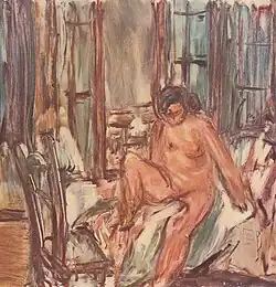 His sensitivity gave him 'the ability to animate and give inner life to objects normally considered prosaic because of their familiarity'.[3][8] Freda Kibel was using Interior with bed as an example, in which distortions of perspective are reminiscent of Van Gogh.[3] His skin tones are reminiscent of those of Renoir.[3]