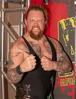 Barry Young (born 3 December 1986) is a Scottish professional wrestler. He is best known for his time in WWE, where he performed on the NXT brand, under the ring name Wolfgang. He was a member of Gallus and is a former NXT Tag Team champion with stable mate Mark Coffey, as well as being a former tag team champion in now defunct NXT UK brand alongside Mark Coffey.[1][2]