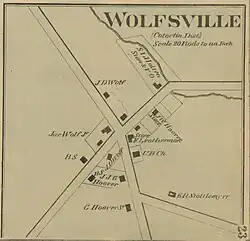 Wolfsville is an unincorporated community in Frederick County, Maryland, United States.[1] Situated in the upper Middletown Valley, the village developed as a regional center of commerce and industry in the mid-nineteenth century. The rural character of the community remains well preserved in its culture and architecture today.