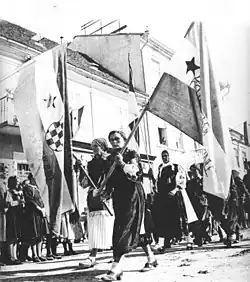 The Women's Antifascist Front of Croatia (Serbo-Croatian: Antifašistički front žena Hrvatske/Антифашистички фронт жена Хрватске), commonly abbreviated as AFŽ, was a mass organization in the People's Republic of Croatia established by the Croatian Communist Party in December 1941, two years before the republic itself. Its stated purpose was "activating and connecting the broad strata of women ... regardless of their political, national or religious affiliation ... and involving them in the national-liberation struggle". It was one of the organizations that gave rise to the Women's Antifascist Front of Yugoslavia in December 1942.[1]