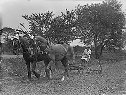 The Women's Farm and Garden Union had existed since 1899 and in February 1916 they sent a deputation to meet Lord Selborne.[2] Selborne's Ministry of Agriculture agreed to fund a Women’s National Land Service Corps with a grant of £150.[3] Louise Wilkins was to lead the new organisation that was to focus on recruiting women for emergency war work.[4] They were tasked with improving recruitment and provide propaganda about the good cause of women of all classes undertaking agricultural work.[3] The new members of the organisation were to not become agricultural workers but to organise others (e.g. in villages) to do this work. By the end of 1916 they had recruited 2,000 volunteers but they estimated that 40,000 was required.[3] At the Women’s National Land Service Corps's suggestion a Land Army was formed. The WNLSC continued to deal with recruitment and the network assisted in the launch of a "Land Army"; by April 1917 they had over 500 replies and 88 joined the new Land Army where they became group leaders and supervisors.[5][3]