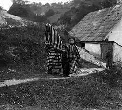 According to János Asbóth: "Meanwhile, from the gardens on the hillsides a monotonous singing, in sharp nasal and head notes, rings through the town. In spite of strict harems and veils, the girls know how to attract the attention of the youths. Those out for a walk never weary of lauding a beautiful voice in proportion to the penetrating shrillness of its tones. The enchanted youth follows the sounds, and creeps up to the garden fence, and thus do most of the Bosnian marriages begin. The lad may perhaps have known the songstress from childhood up, when she as yet wore no veil, but only a great cloth over her head. He mayhap caught sight of a full-blown maiden during the last days before she took the veil. If it is the right young man, the coy doe allows herself, after a few such hedge visits, to be drawn into conversation ; after a week, perhaps she raises her veil. Should he be able once to grasp her hand through the fence or through a chink in the gate, it is a sign of agreement; and then, provided that the youth meet with the approval of the parents, nothing further stands in the way of their happiness. Besides, under the mother's watchful eye, matters can hardly go so far, if the parents do not approve of the young man. There are scamps who will thus play with several girls in succession ; but they soon become notorious, and the mothers warn their daughters against them."[20]