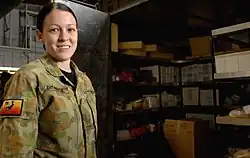 Women currently make up 19.2% of the ADF workforce.[1] Women have served in Australian armed forces since 1899.[2] Until World War II women were restricted to the Australian Army Nursing Service. This role expanded in 1941–42 when the Royal Australian Navy (RAN), Australian Army and Royal Australian Air Force established female branches in which women took on a range of support roles. While these organisations were disbanded at the end of the war, they were reestablished in 1950 as part of the military's permanent structure. Women were integrated into the services during the late 1970s and early 1980s, but were not allowed to apply for combat roles. In January 2013, serving women were allowed to apply for all positions in the Australian Defence Force (ADF) except special forces which became open to women in January 2014.[3][4] In January 2016, civilian women became able to direct entry to all positions.[4][5]