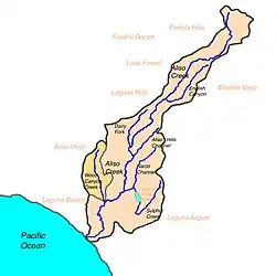 ![]() Map of the Aliso Creek watershed with Wood Canyon Creek subwatershed highlighted | |