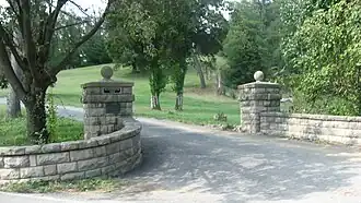 Woodbine, also known as the Anders Rasmussen House, is a historic early-20th-century estate located at New Albany, Floyd County, Indiana. It was built in 1920 for Anders Rasmussen, who owned a florist business in New Albany and once served as a florist for the King of Denmark. The 2+12-story Bungalow / American Craftsman-style house is made of stucco, brick, limestone, asphalt, and terra cotta, with a full basement. The house includes a 1+12-story caretaker's apartment. The house stayed with the family until 1945, and has gone through several hands since then.[2]: 5, 12, 13–14  The estate is currently owed and being restored by the owner/winemaker for Downtown New Albany's River City Winery located just two miles away. Plans for a vineyard on the estate are underway.[3]
