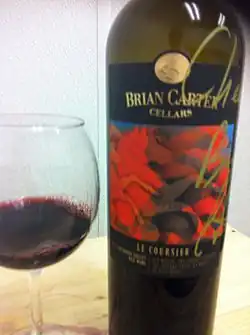 Bottle of Brian Carter wine, signed by the winemaker himself, a longtime resident of Woodinville wine country.