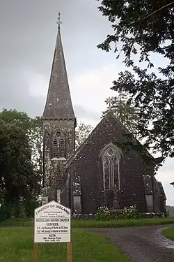 There is a Church of Ireland church, within the parish group of Aughrim, in the ancient Diocese of Clonfert, now within the United Diocese of Limerick and Killaloe. It was designed in 1860 and built in 1874 for Lord Ashtown, by James Forth Kempster. It has a four-bay nave, a vestry and bell tower, carved wooden pulpit and lectern, and stained glass windows.[2][10]