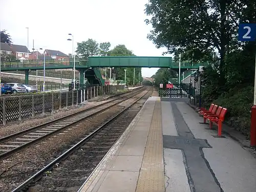 ![]() Platform 2 in 2011, with the new footbridge from platform 1 | |||||