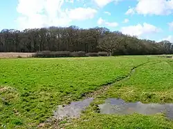 The Pokerlee Stream runs through the south of parish. It then runs into Henfield and into the Beeding Brooks where it joins the River Adur. It runs through an area called the Moors (TQ 225 155), which is a low plain with some unimproved wet rush pastures. There is gorse and birch in the fence lines and bog pondweed in two ditches. To the north of the Moors is a pony-grazed western fields behind the Swains Farm Shop hold a large and well-managed population of the rare meadow thistle in Sussex, with a fine display of heath spotted orchid, lousewort, tormentil, ragged robin, marsh pennywort and at least six sedges.[5]
