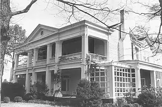 Woodside was a historic residence in Belle Mina, Alabama. The land on which the house was built was originally part of Alabama Governor Thomas Bibb's estate, Belle Mina. Thomas' son, Porter Bibb, built Woodside in 1861 for his daughter, Mary Chambers Bibb. The two houses stood one-half mile (1 km) apart. Woodside was a two-story Greek Revival house, originally with a central, double-height portico that was extended to the full width of the façade in the early 1900s. The house has a center-hall plan, with two rooms on either side of a hallway on both floors. The rear of the house was originally a pair of one-story wings, but a second story was added in an early 20th-century renovation. Greek Revival details continued inside the house, such as mantels and architrave-framed panels in the stairwell.[3] The house was listed on the National Register of Historic Places in 1982.[1] Woodside was destroyed by a fire in late November 2022.