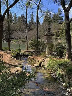 The Shinzen Friendship Garden, also known as the Shinzen Japanese Garden is a 5-acre Japanese stroll garden.[9] The Garden was planned around the four seasons, with distinctive plantings in each area.[8] The spring section features Azaleas, Camellias, crabapples, irises, flowering cherries and plums. A paved pathway connects visitors to the summer section, in which a Koi Pond is the centerpiece. Tulip trees, Chinese pistache and tallow trees are planted in the Autumn Section, where they display bright colors in the fall. A large waterfall, pines and evergreens anchor the Winter Section.[8]
