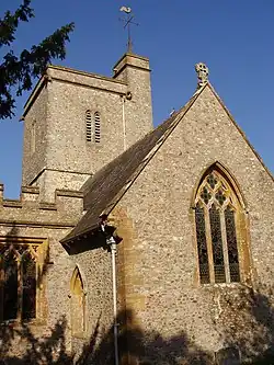 The parish church was built mostly between the 13th and 15th centuries but was restored and added to in 1872.[8] It lies within the grounds of the adjacent Wootton House,[7] a three-storey brick-built house re-built in about 1765 by Thomas Rose-Drewe (1740-1815),[9] second grandson of Thomas Rose (died 1747) of Wootton House, but also restored and added to in the late 19th century.[8] The rectory dates from the end of the 15th century.[10] Twenty structures within the parish are listed by English Heritage for their historic or architectural interest.[11]