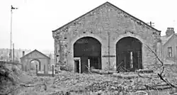The substantial stone station[15][13][16] housed the headquarters of the C&WJR. There were sidings to the south of the platforms. An engine shed and wagon shops were added there in November 1897.[8] The shed was closed in May 1923; the building was then used as a wagon repair shop for many years.[17][18]