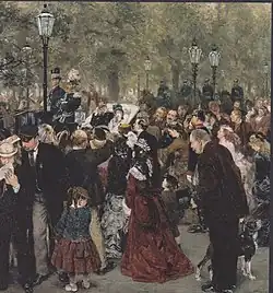 Description and interpretation of the painting as well as of the motif's background in connection with remarks on realism, in which working people are depicted in works of art and their images are elevated to the salons of society: