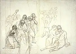 The Works of art in The Aesthetics of Resistance are those included in Peter Weiss' novel The Aesthetics of Resistance. They form a kind of musée imaginaire (imagined museum) with more than a hundred named artists and just as many artworks, mainly of the visual arts and literature, but also of music and the performing arts.[1] Peter Weiss wrote the three-volume novel, which runs to around 1000 pages, between 1971 and 1981. The plot is set between 1936 and 1945, and is located in Nazi Berlin, Spain during the civil war, Paris before the World War II and Stockholm as one of the places of refuge for the German exiles. The characters are based on real personalities, the main protagonists organising themselves in the resistance group known as the Red Orchestra. Representations of artists, works of art, their contexts and backgrounds are included in the plot line and form a web of mutual interconnections. The reception takes place in multi-layered reflections by the protagonists of the novel, through the reference to historical and political events, to mythological set pieces, to artists' biographies, to dream images or in critical questioning.