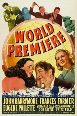 World Premiere is a 1941 American comedy film directed by Ted Tetzlaff and written by Earl Felton. The film stars John Barrymore, Frances Farmer, Eugene Pallette, Virginia Dale, Ricardo Cortez, Sig Ruman and Don Castle.[1] The film was released on August 21, 1941, by Paramount Pictures.[2][3] Otis Garrett was originally scheduled to direct the film but had to pull out due to undergoing major surgery.[4]