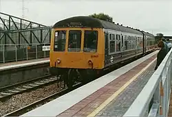 The station at Worle was developed as a joint initiative between British Rail and Avon County Council. It cost £700,000 and was built using lightweight construction materials due to being sited on marshy ground.[16] The station was opened on 24 September 1990 by Councillor Betty Perry, the chair of Avon Council.[18] The first train was a westbound Regional Railways service, operated by Class 150 Sprinter DMU 150270. All services were local ones – no scheduled intercity services would call at Worle until 2007.[16]