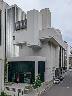 The present Salters' Hall on Fore Street, EC2 dates from 1976,[12] designed by architect Sir Basil Spence, being Grade II-listed in 2010.[13] A major redevelopment by architects de Metz Forbes Knight[14] including a new entrance pavilion was completed in 2016.[15]