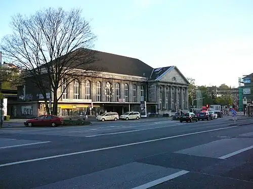 Wuppertal-Barmen station is a station in the city of Wuppertal in the German state of North Rhine-Westphalia on the Elberfeld–Dortmund railway. Its entrance building is protected as a monument. It was Barmen Hauptbahnhof prior to Barmen's incorporation in Wuppertal in 1929. Before the Second World War it was an important stop for express trains and had substantial freight traffic. Its importance declined after the war in favour of Oberbarmen and since the renaming of the Elberfeld station as Wuppertal Hauptbahnhof. The Opernhaus Wuppertal is nearby.
