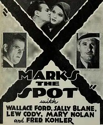 X Marks the Spot is a 1931 American pre-Code crime drama film directed by Erle C. Kenton[1] and released by Tiffany Pictures, which operated from 1921 to 1932.