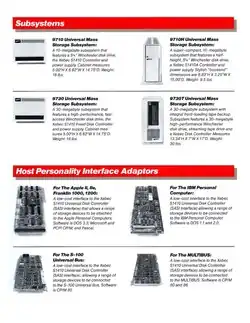 Brochure from 1984 showing disk subsystems and SCSI host adapters for multiple computer systems