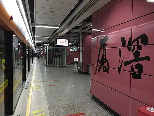 Xiajiao Station (simplified Chinese: 厦滘站; traditional Chinese: 廈滘站; Cantonese Yale: Hahgaau Jaahm) is a station on Line 3 of the Guangzhou Metro that started operations on 28 December 2006. It is located under Xiajiao Village (厦滘村) in Luoxi Island, Panyu District of Guangzhou. It is near Wuzhou Decoration Center, Shaxi Plastic Center, the White Palace Hotel and the White Palace Theater.[1][2][3]