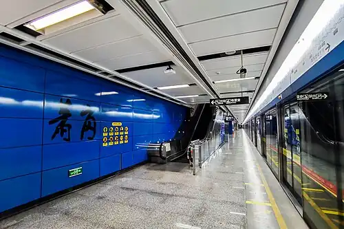 Xiao-gang station (simplified Chinese: 萧岗站; traditional Chinese: 蕭崗站; Jyutping: siu1 gong1 zaam6; Cantonese Yale: Sīugōng Jaahm), known as Jiangxia station [1] during planning, is a metro station on Line 2 of the Guangzhou Metro. It is located underground to the south of Huangshi Road East (黄石东路), the east of Yuncheng Road West (云城西路) and the south of Xiaogang River (萧岗涌), in the Baiyun District of Guangzhou.[2] It started operation on 25 September 2010.