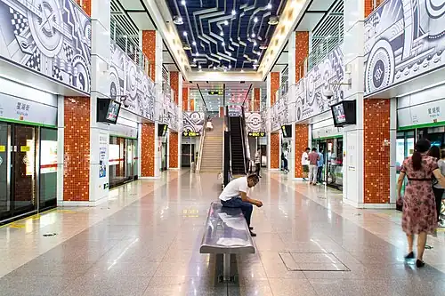 Xinghu Jie Station (Chinese: 星湖街站) is a station of Line 1 of the Suzhou Metro. The station is located in Suzhou Industrial Park of Suzhou. It has been in use since April 28, 2012, the same time of the preoperation of Line 1.[1]