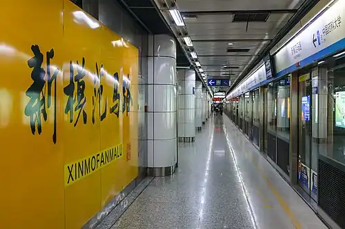 Xinmofanmalu station (simplified Chinese: 新模范马路站; traditional Chinese: 新模範馬路站; pinyin: Xīnmófànmǎlù Zhàn), is a station of Line 1 of the Nanjing Metro. It started operations on 3 September 2005[1] as part of the line's Phase I from Maigaoqiao to Andemen.[a]